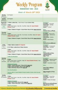 Weekly Program – Week of March 20th, 2023